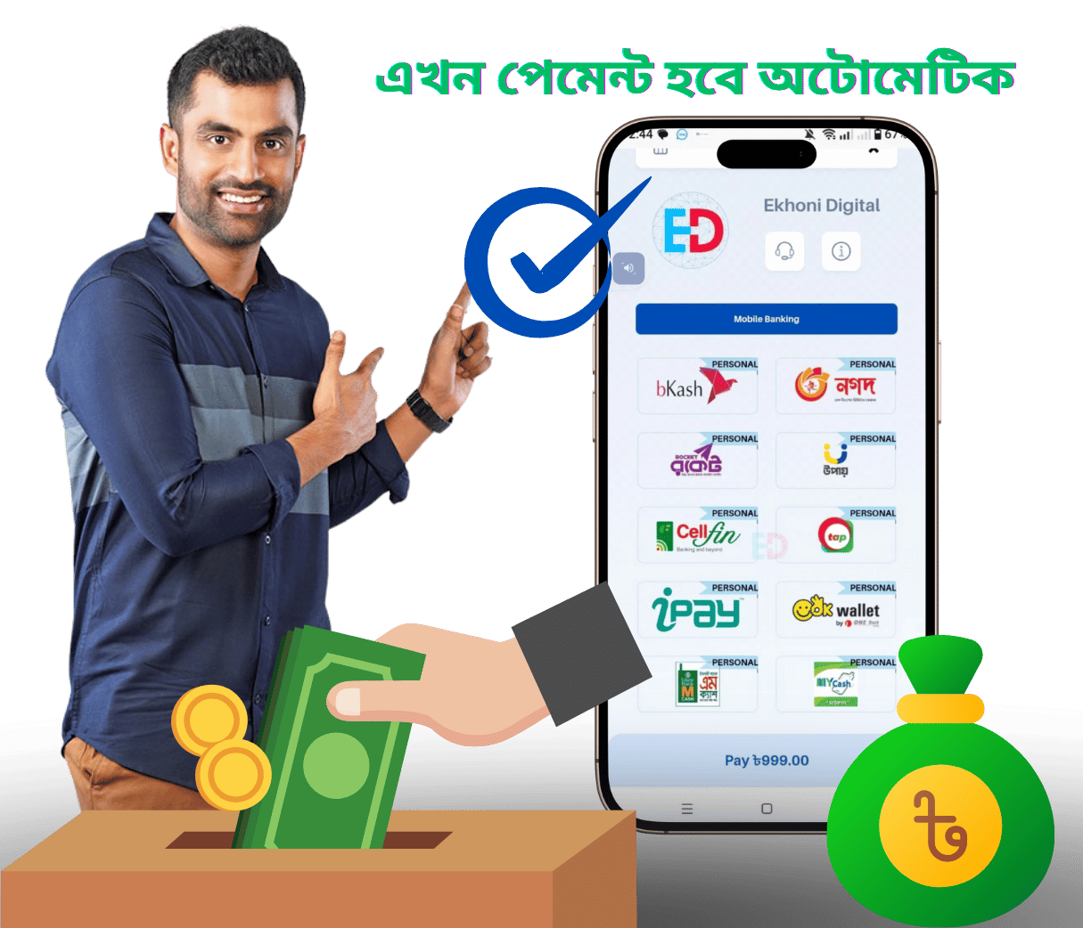 Ekhoni Digital হলো একটি আধুনিক ও নিরাপদ অনলাইন পেমেন্ট সলিউশন, যা ব্যবসায়িক লেনদেনকে সহজ, দ্রুত ও সুরক্ষিত করে তোলে। আমরা ছোট স্টার্টআপ থেকে শুরু করে বড় এন্টারপ্রাইজ পর্যন্ত সবার জন্য ডিজিটাল পেমেন্ট সার্ভিস প্রদান করি। ❓ How does Ekhoni Digital work? আপনার ওয়েবসাইট বা অ্যাপের সাথে Ekhoni Digital Payment Gateway ইন্টিগ্রেট করলে কাস্টমাররা সরাসরি অনলাইনে পেমেন্ট করতে পারবে। আমাদের সিস্টেমে রয়েছে API ইন্টিগ্রেশন, অটোমেটেড লেনদেন ম্যানেজমেন্ট এবং বিভিন্ন পেমেন্ট মেথড সাপোর্ট। ❓ Is Ekhoni Digital secure? হ্যাঁ, প্রতিটি লেনদেন SSL এনক্রিপশন, Multi-Factor Authentication এবং Fraud Detection System এর মাধ্যমে সুরক্ষিত থাকে। আপনার ও আপনার কাস্টমারের ডেটা সবসময় নিরাপদ থাকবে। ❓ What payment methods are supported? Ekhoni Digital-এ আপনি বিভিন্ন ধরনের পেমেন্ট গ্রহণ করতে পারবেন, যেমনঃ Credit/Debit Card Payments Mobile Banking (bKash, Nagad, Rocket ইত্যাদি) Bank Transfer Digital Wallets Recurring Payments & Subscriptions ❓ Can small businesses use Ekhoni Digital? অবশ্যই! ছোট অনলাইন শপ হোক বা বড় এন্টারপ্রাইজ – Ekhoni Digital আপনার ব্যবসার সাথে মানিয়ে যায়। আপনার প্রয়োজন অনুযায়ী কাস্টমাইজড সলিউশন পাওয়া যাবে। ❓ Do I need technical knowledge to use it? না, খুব বেশি টেকনিক্যাল জ্ঞান প্রয়োজন নেই। আমাদের Easy Dashboard থেকে আপনি সব লেনদেন ট্র্যাক করতে পারবেন। এছাড়াও আমাদের সাপোর্ট টিম সবসময় আপনাকে সাহায্য করবে। ❓ How to integrate Ekhoni Digital with my website? আপনি চাইলে আমাদের API Integration ব্যবহার করতে পারেন অথবা Ready-made Plugins (WordPress, WooCommerce, Shopify ইত্যাদি) ব্যবহার করে কয়েক মিনিটেই সেটআপ করতে পারবেন। ❓ Does Ekhoni Digital provide customer support? হ্যাঁ, আমরা 24/7 কাস্টমার সাপোর্ট দিয়ে থাকি। যেকোনো সমস্যায় আমাদের টিম আপনার সাথে আছেই। ? আজই Ekhoni Digital ব্যবহার শুরু করুন এবং আপনার ব্যবসার পেমেন্ট সিস্টেমকে করে তুলুন আরও Smart, Secure & Automated।